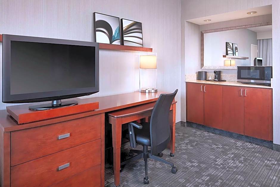 This air-conditioned room includes a cable TV, a work desk and a refrigerator.